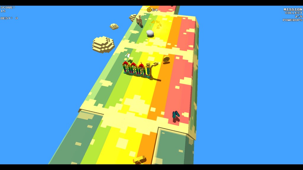 - The farther you go, the more points you accumulate. Collect gems to boost your points!